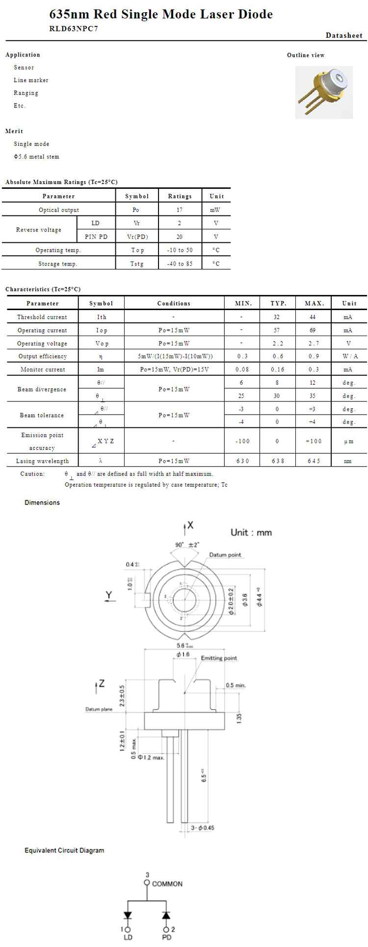 | Wavelength: | 635nm | Optical output: | CW 17mW |